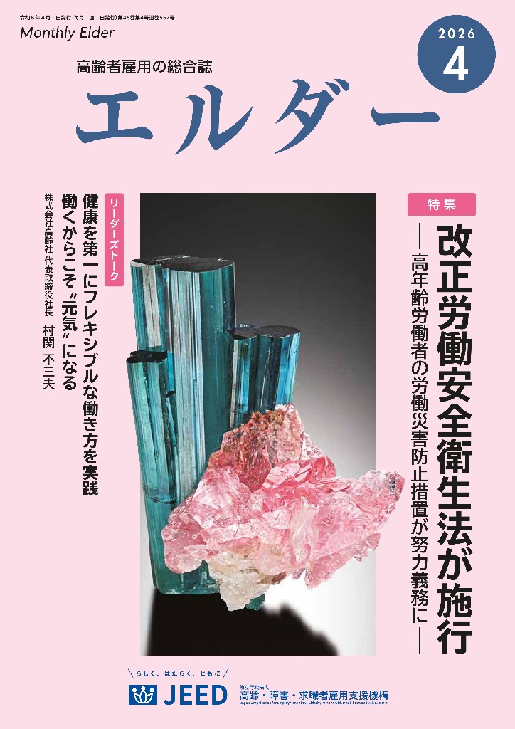 トップ求人案内&コラム「エルダー」に村関社長 のインタビュー記事が掲載されました 2026.04.02 独立行政法人高齢・障害・求職者雇用支援機構の啓発誌「エルダー」2026年4月号に、弊社代表取締役社長 村関不三夫 のインタビュー記事が掲載されました。 カテゴリから探す 書籍 求人案内 コラム マスコミ取材